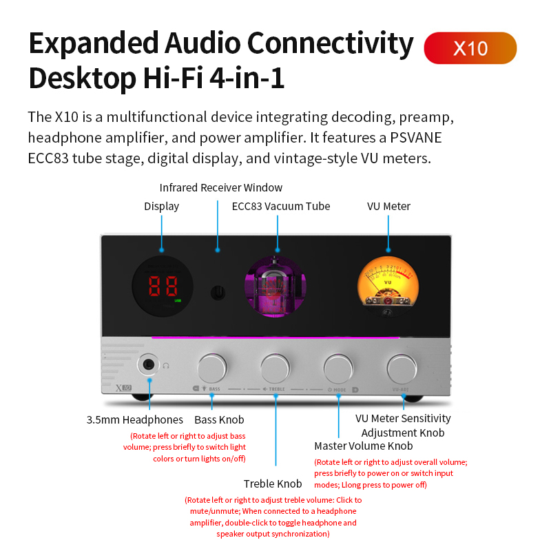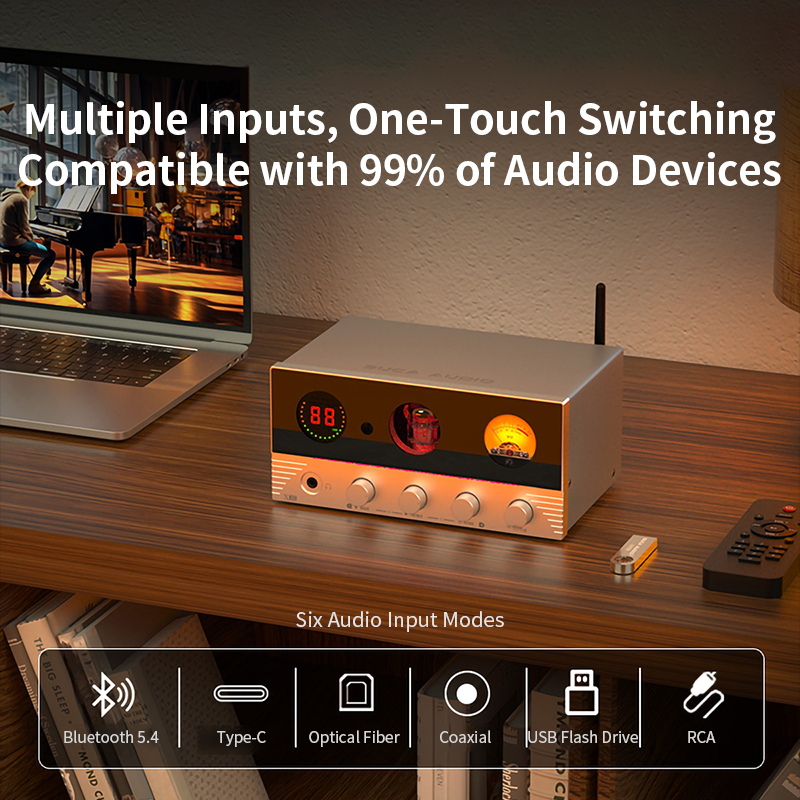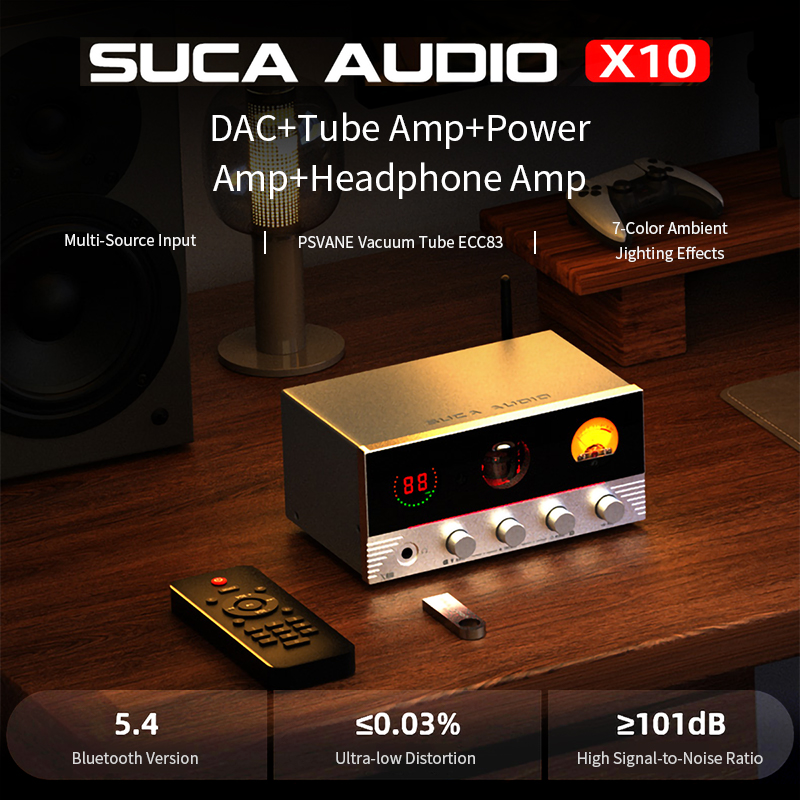 SUCA AUDIO X10 DAC & Tube Amp & Powe Amp & Headphone Amp PSVANE Tube ECC83 Bluetooth 5.4